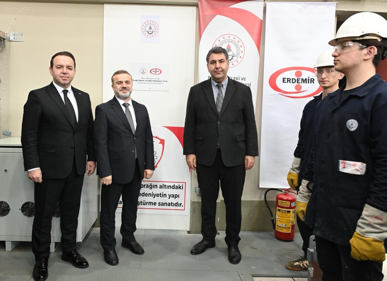 Türkiye’nin lider yassı çelik üreticisi Erdemir, mesleki ve teknik eğitimin niteliğini artırmaya yönelik katkılarına bir yenisini daha ekledi. Şirket, Ereğli Mesleki ve Teknik Anadolu Lisesi’ne (EMTAL), öğrencilerin modern üretim teknolojileriyle tanışmasını sağlayacak yeni bir indüksiyon fırını temin etti.